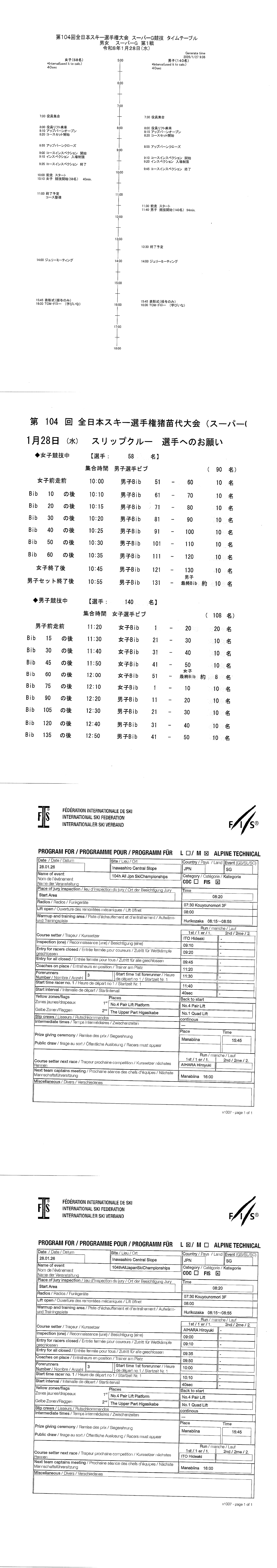 1月28日「第104回全日本スキー選手権大会」のタイムテーブルとスリップクルーのお願いを掲載しました。